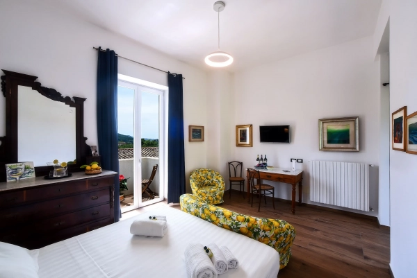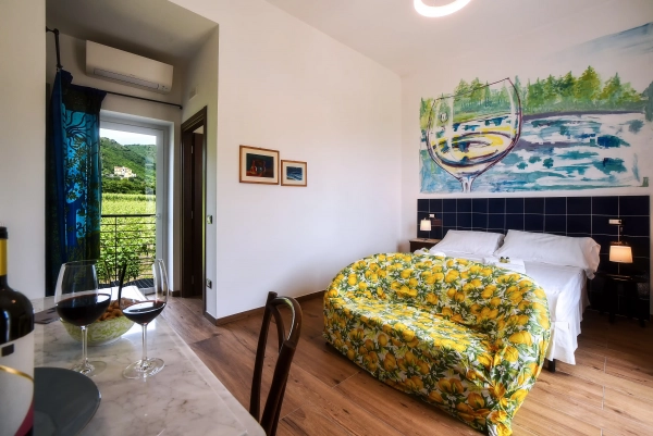 The 'Fusara' room has a large double bed, soft fabrics and fine details that reflect a passion for hospitality.