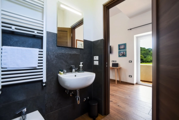 Il bagno privato, moderno e funzionale, è dotato di ogni comfort per coccolarti dopo una giornata trascorsa tra passeggiate e degustazioni.